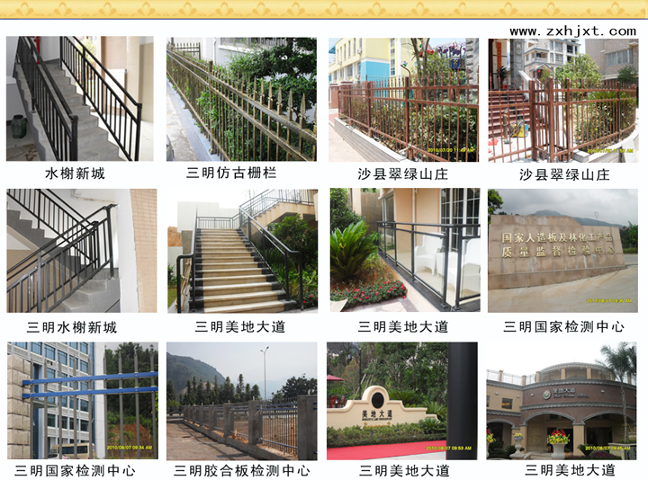 | 西安秦嶺山水 | 深圳華來利實業(yè)圣莫利斯 | 廣東梅州華僑城 | 中鐵一局深圳地鐵五號線的鐵路護欄 | 東莞長安第二人民法院宿舍樓的樓梯護欄 |